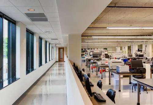 Similar to hospital work, adjacencies and space requirements in a lab are everything. My goal was to create a lab that helped technicians do their work in a safe yet elegant and pleasant environment.